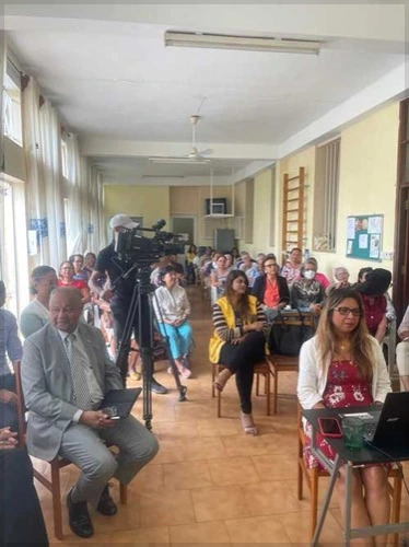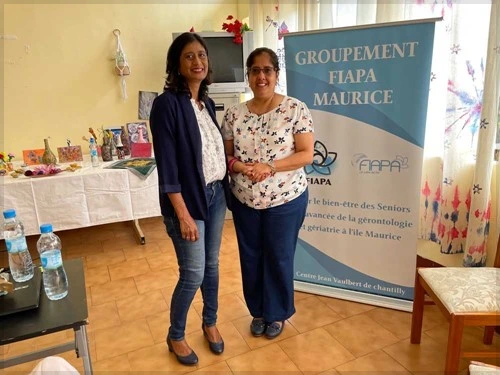 Conférence sur le vieillissement réussi par dr pascale Dinan au public de la FIAPA. Invite d’honneur : vice président de la république de Msurice, honorable Eddy Boissezon